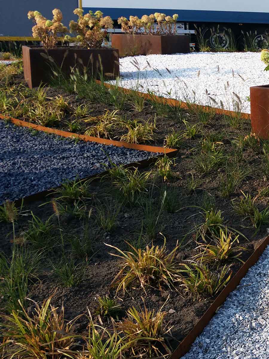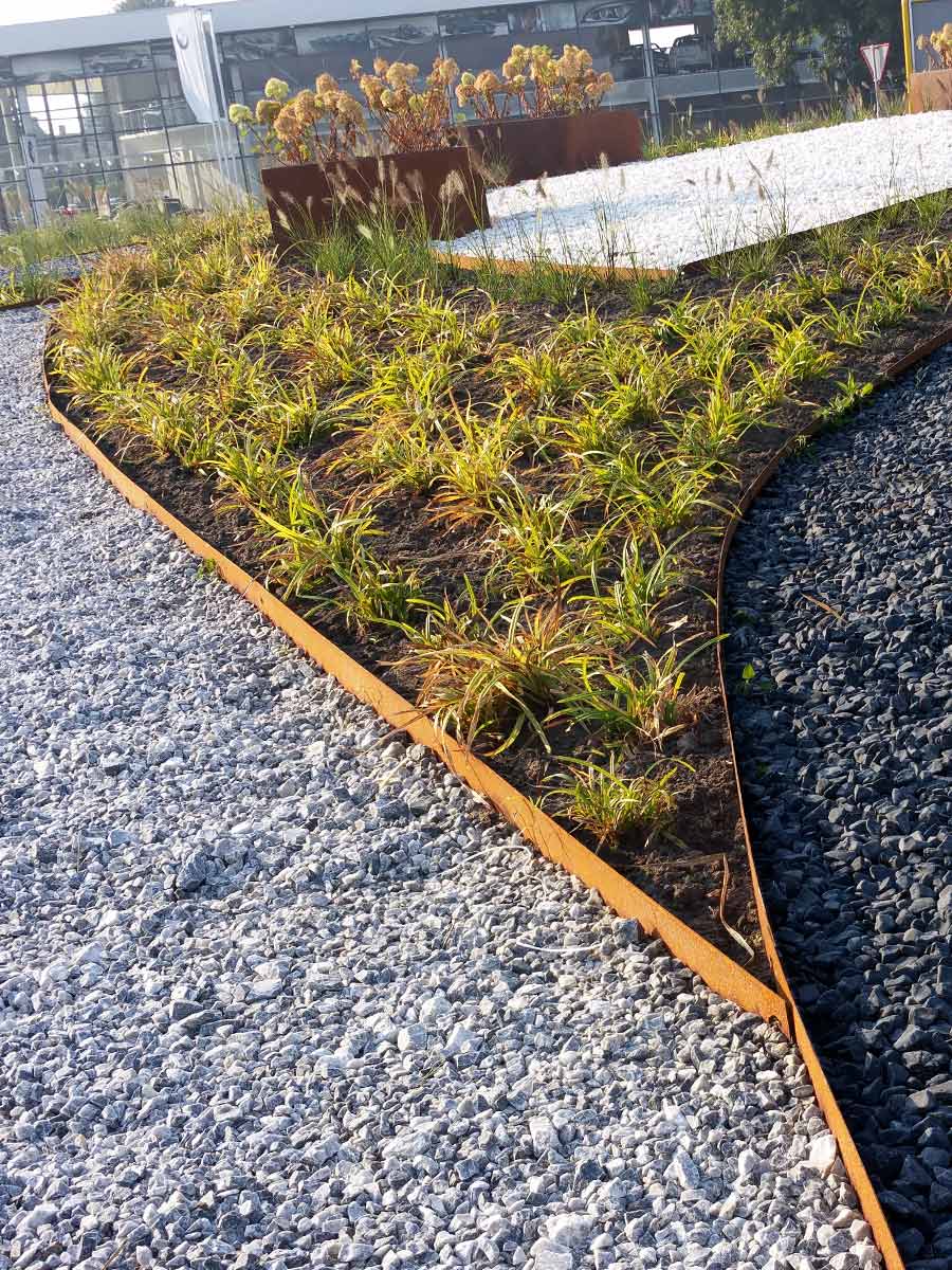 - Durch die Rostschicht erhält die Cortenstahl Rasenkante ein einzigartiges Aussehen